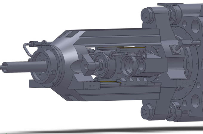 5)整個(gè)機(jī)構(gòu)為整體式結(jié)構(gòu),結(jié)構(gòu)緊湊更容易實(shí)現(xiàn)雙動擠壓機(jī)穿孔系統(tǒng)要求的同心度,加工制作相對容易。