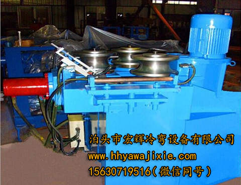 本大棚彎管機(jī)由變頻電機(jī)做動(dòng)力源,減速機(jī)輸出力,齒輪傳動(dòng)。卷彎速度可通過(guò)變頻電機(jī)轉(zhuǎn)速來(lái)任意調(diào)節(jié)。卷彎直徑的大伺服電機(jī)來(lái)調(diào)節(jié),該設(shè)備有8個(gè)主動(dòng)輪。一個(gè)被動(dòng)輪完成。