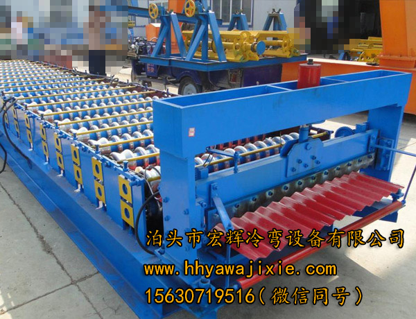 加寬水波紋壓瓦機安裝的固定方式有穿透式和暗扣隱蔽式兩種。穿透式固定是屋面和墻面彩鋼設備安裝的常用方式,即用自攻螺釘或鉚釘將彩板固定在支撐件(如檁條)上,穿透式固定分為波峰固定、波谷固定或他們的組合。暗扣隱蔽式固定是將與暗扣式彩板配套的特制暗扣先固定在支撐件(如檁條)上,彩板的母肋與暗扣的中心肋齒合的固定方法,一般用于屋面板的安裝。