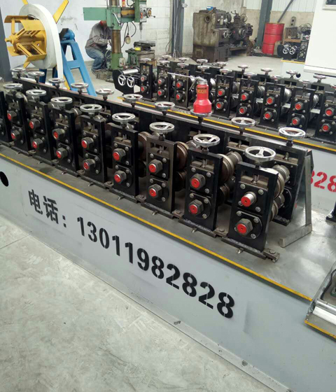 輕鋼龍骨機是以帶鋼為原料、通過連續(xù)冷軋成型,生產(chǎn)復(fù)雜的斷面型材(產(chǎn)品有:輕鋼龍骨、烤漆龍骨、卡式龍骨、各種建筑型材、鋼構(gòu)、鋼襯門框型材、高速護攔等)和不同規(guī)格的冷彎、烤漆機組設(shè)備,采用PLC控制。