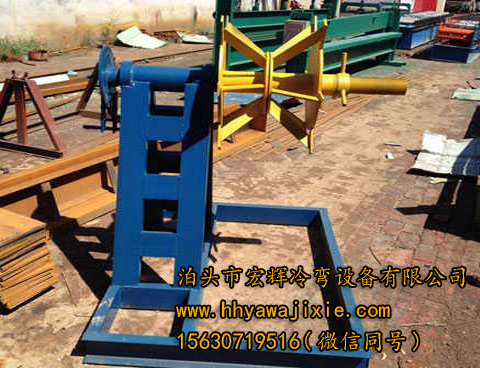 C型鋼放料架架其承載能力大,使用壽命也較長。其特征在于:帶剎車,漲芯, 其包括機(jī)座,所述機(jī)座的兩端分別安裝有絲桿,一側(cè)的絲桿連接帶輪,所述兩邊的絲桿分別套裝連接套環(huán),所述套環(huán)分別連接支架,所述支架分別通過兩側(cè)的側(cè)板鑲裝于所述機(jī)座的表面,所述支架分別通過轉(zhuǎn)軸連接錐形架。